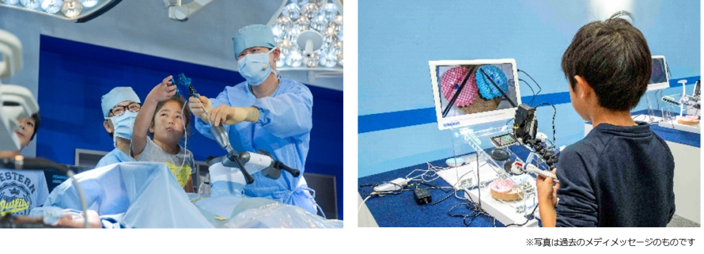 当日は、臨床検査技師や看護師などの医療従事者から学べる「医療の仕事体験」や、内視鏡の操作体験など本物の医療機器に触れることができる「ドクターのトレーニング体験」など、体験コーナーがたくさんあります。また、「オペ室再現スペース」では、心臓カテーテル、腹腔鏡手術、手術支援ロボットの実演を実施します。計4回のトークライブを開催し、現役の医療従事者が現場からの思いを、皆様にお届けします。