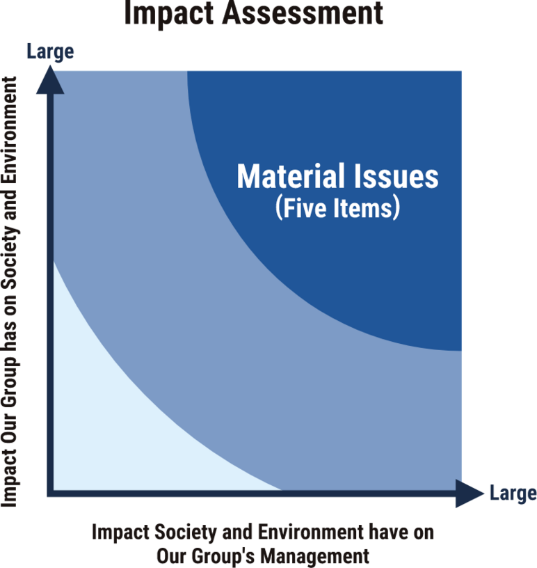 The Sustainability Committee played a central role in the review, and after deliberation and approval by the Board of Directors, we identified the materiality. Going forward, we will advance our sustainability activities based on these important issues in order to promote sustainable management from a long-term perspective, with the aim of realizing a sustainable society and achieving sustainable growth for our group.